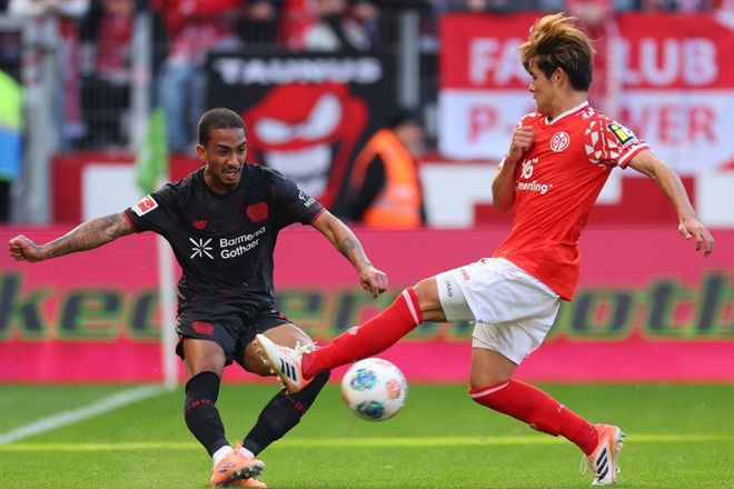勒沃库森排出3421阵型。科法内顶在最前面。波库和霍夫曼联袂出击。格里马尔多、阿莱士-加西亚、费尔南德斯和阿图尔联袂出击。塔普索巴、安德里希和巴代3后卫首发出战。弗莱肯担任首发门将。勒沃库森首发阵容总身价1.85亿欧元。而美因茨首发阵容总身价只有9300万欧元。